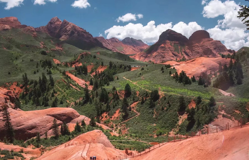 The first Xinlong Hongshan Park in Sichuan, China, is full of Danxia landforms in the entire mountain