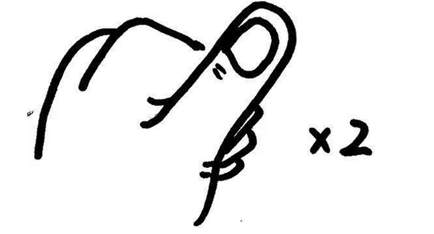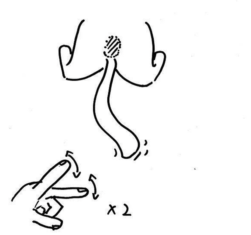 14. Use your index finger and middle finger to tap the position in the picture (the position of the 4 fingers with the tail up).